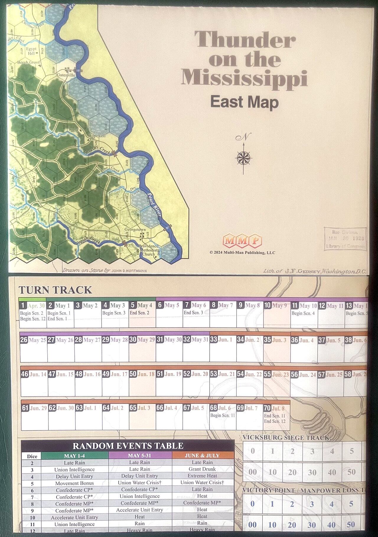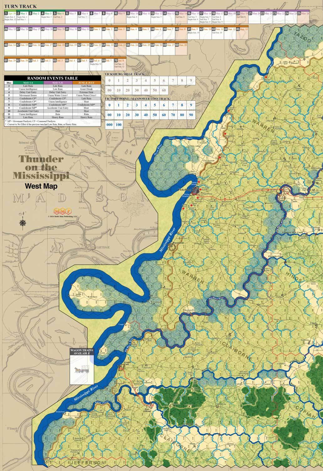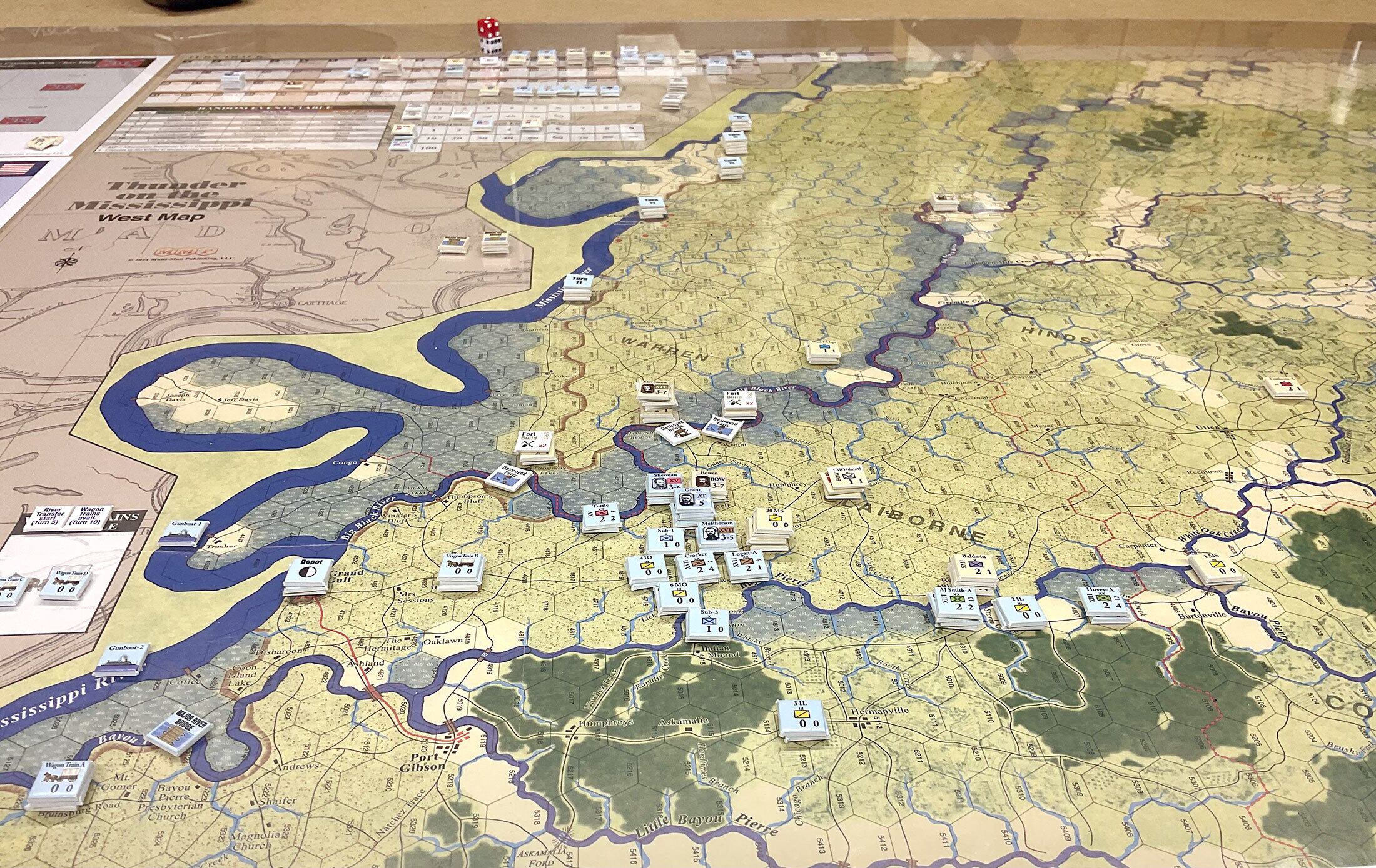 『サンダー・オン・ザ・ミシシッピ』は、受賞歴のあるグレート・キャンペーン・オブ・ザ・シビルウォー(GCACW)シリーズのウォーゲームで、ユリシーズ・S・グラント少将の1863年のビックスバーグ方面作戦を再現しています。このゲームは Joe Balkoski(GCACWシリーズのオリジナルデザイナー)とChris Withersによってデザインされました。