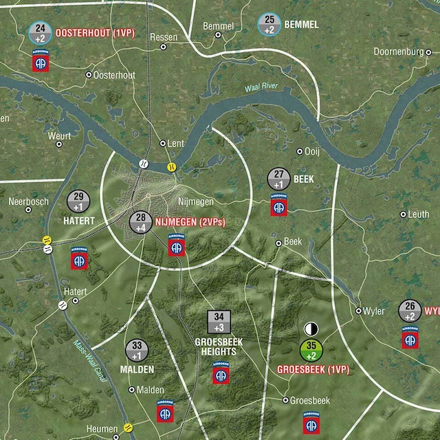 旧アバロンヒル社の『アルンヘム強襲』のシステムを派生させたエリア・ムーブメント・シリーズ(AMS)の一作で、エリア移動とインパルス制が特徴のウォーゲームです。マーケットガーデン作戦を3時間で再現します。