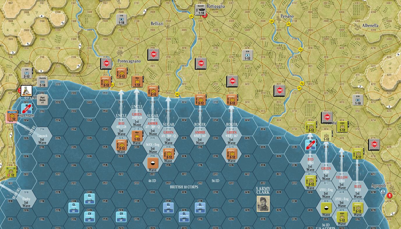 1ヘクス=1マイル。主作戦「アヴァランチ作戦」を再現。