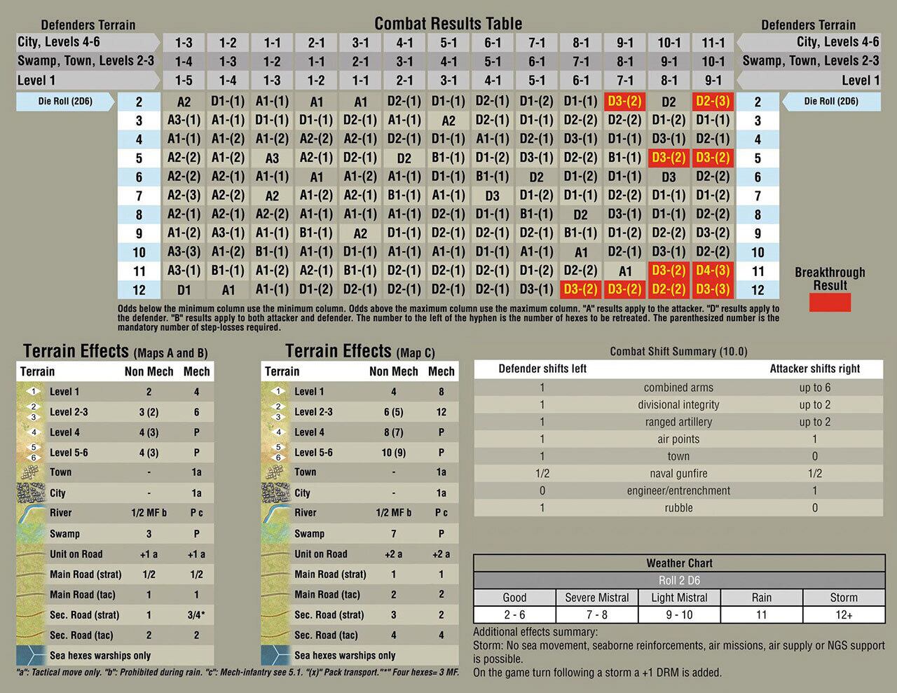 1ヘクス=1マイル。重要港湾や幹線道路、ドイツ軍の主要航空基地フォッジャを含む戦略エリア。