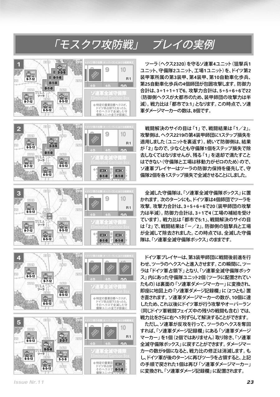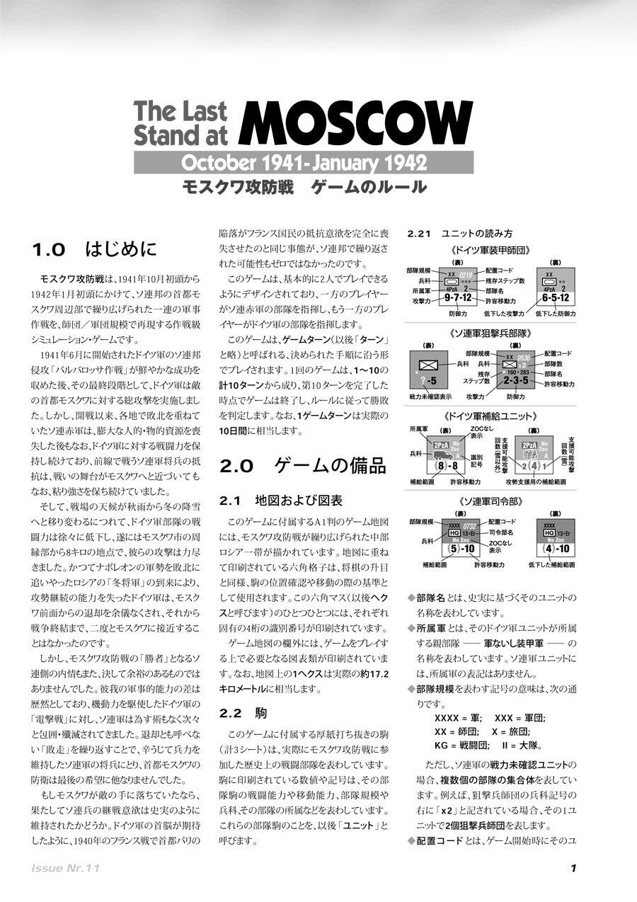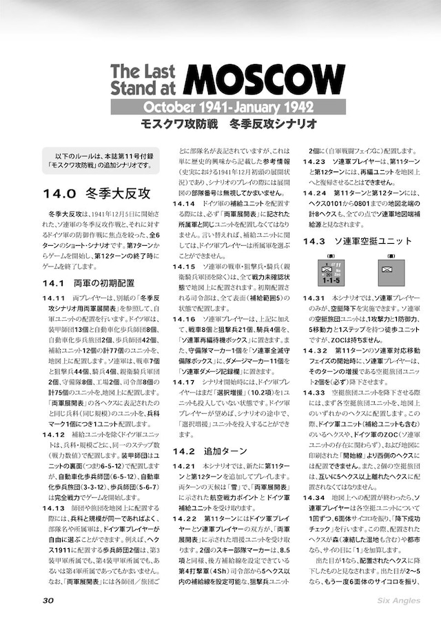 ※『ラストスタンド』はシックスアングルズ第11号付録ゲーム「モスクワ攻防戦」の英語ライセンス版です。ゲームデザイナーの山埼雅弘さんに新しい日本語ルールを作ってもらいました。シックスアングルズ版と比べると、戦闘の例が1ページ丸々追加されたり、追加シナリオが増えていてシックスアングルズ版のルールとは全然違ったものになります。