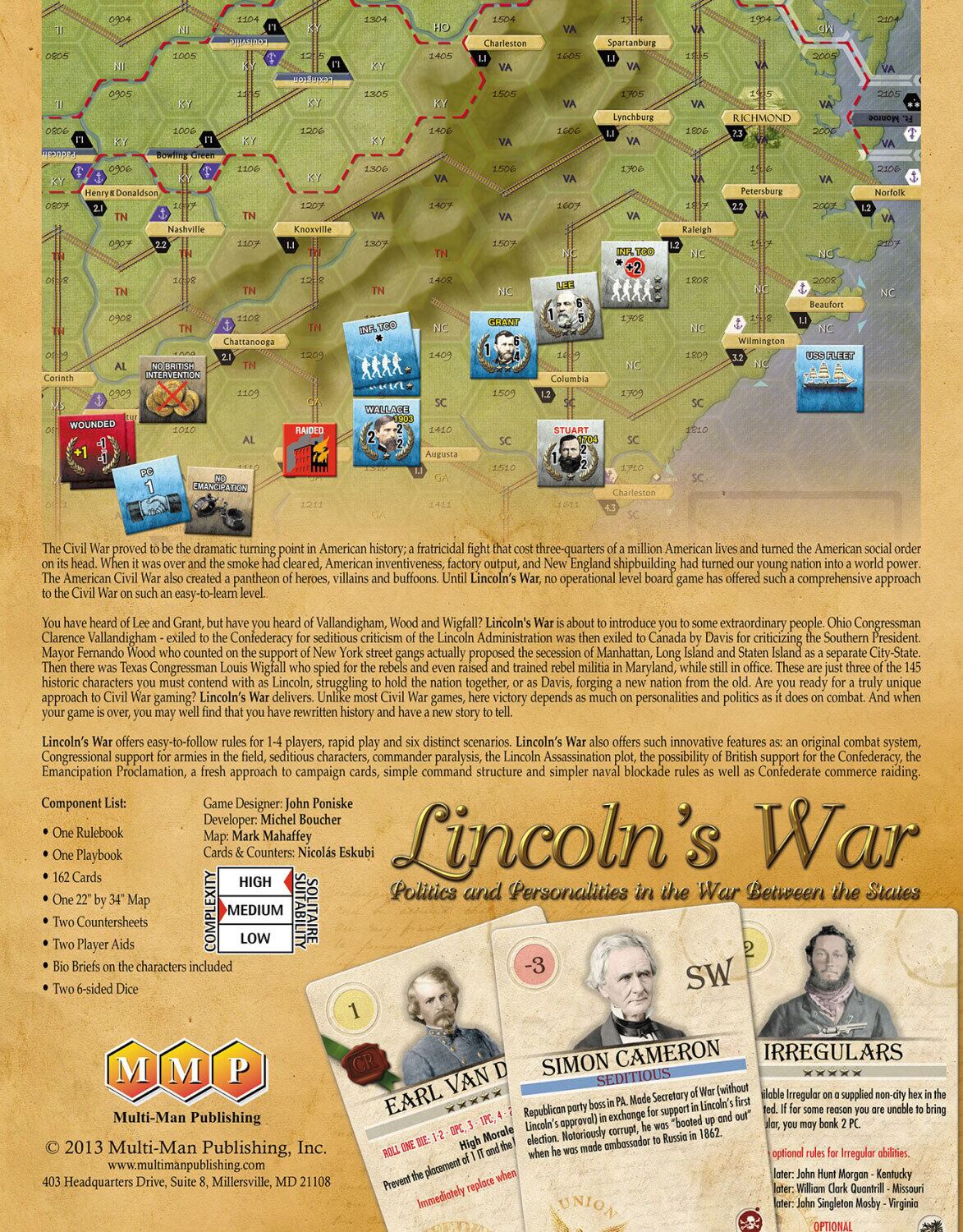 『リンカーンの戦争』は、南北戦争における政治と軍事の密接な関係を描いたカードドリブン・ウォーゲームです。