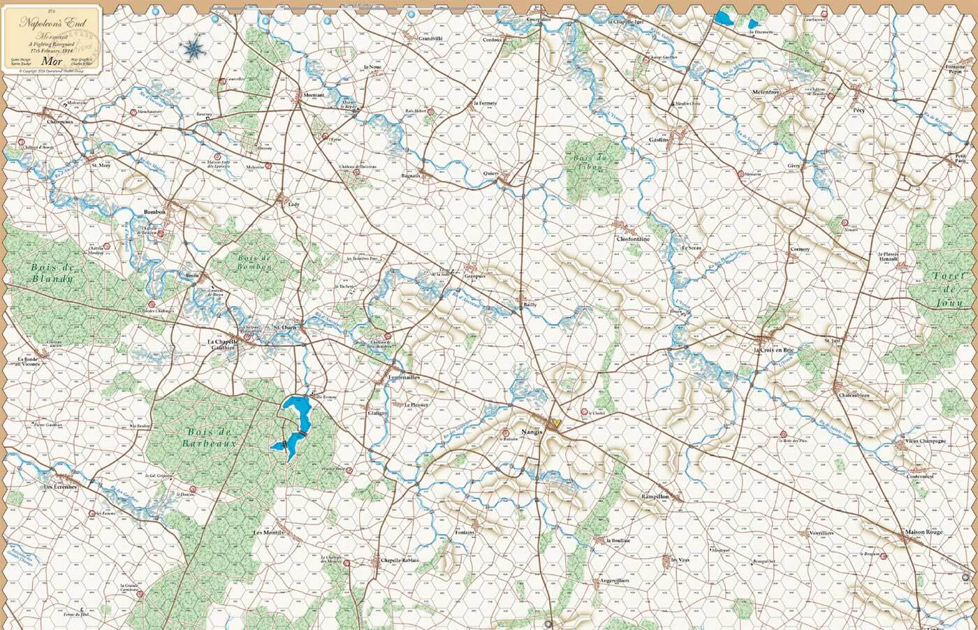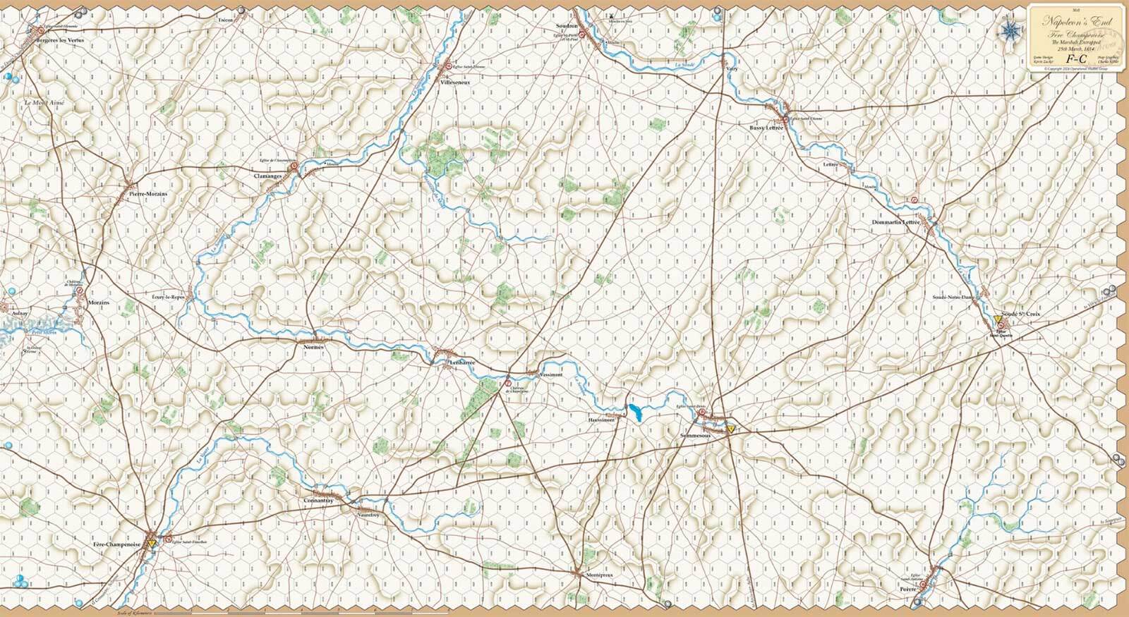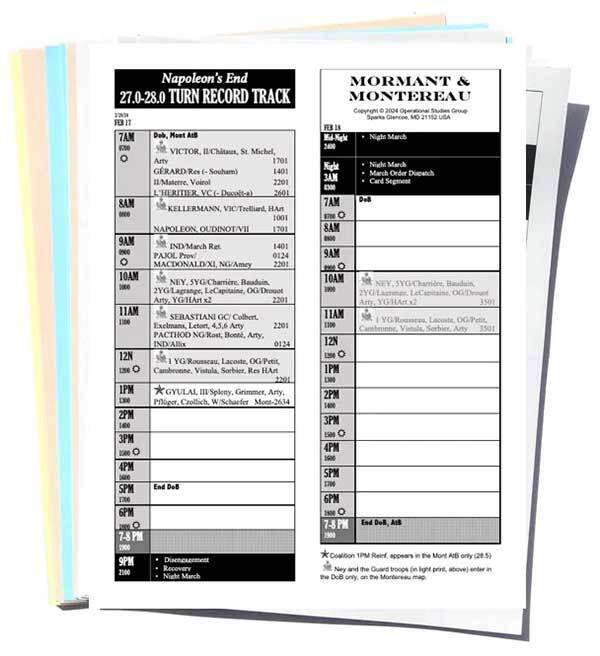4つの戦闘のうち最初のものは、2月17日と18日のモルマン(MORMANT)の戦いで『祖国の危機』(La Patrieen Danger)でも取り上げているヴォーシャンプの戦いの3日後に起きたものです。2つの戦いは3月下旬に行われた:アル・シュール・オーブはランスの戦いの8日後に行われたもので、『ナポレオン・リトリート』に収録されています。この3つのゲームで12戦のグランド・キャンペーンを考えることができる。